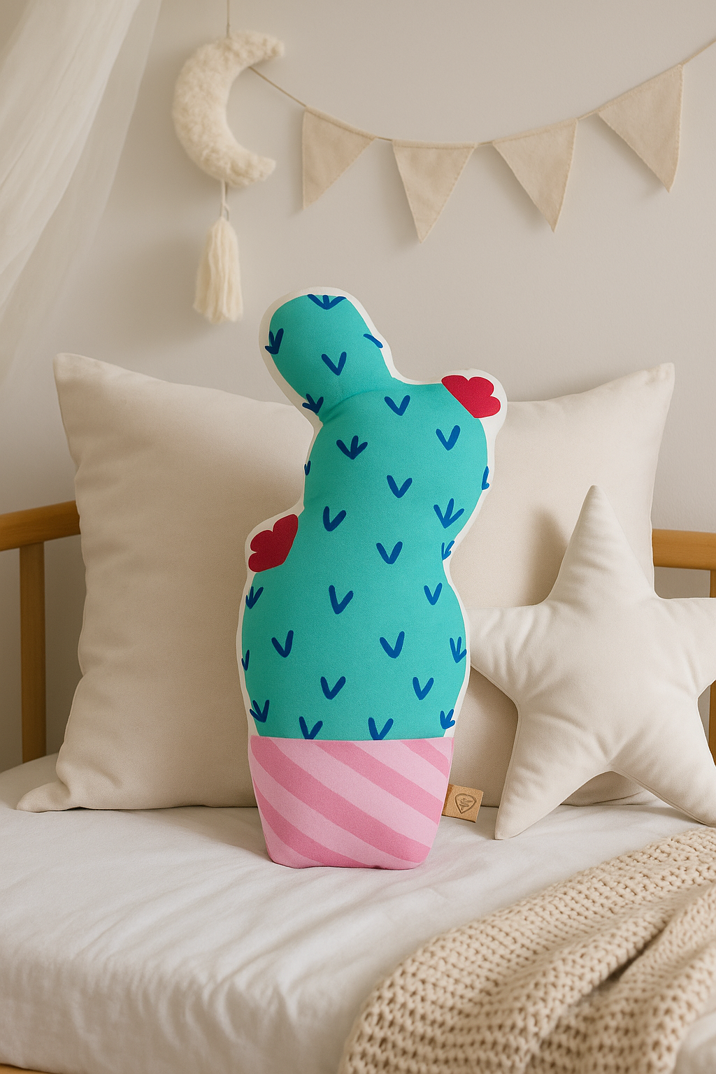 Ten zabawny, turkusowy kaktus w pastelowej doniczce to idealna dekoracja do pokoju dziecka (i nie tylko!). Wygląda jak z kreskówki, jest lekki, miękki i zupełnie bezobsługowy – zero podlewania, maksimum uroku.