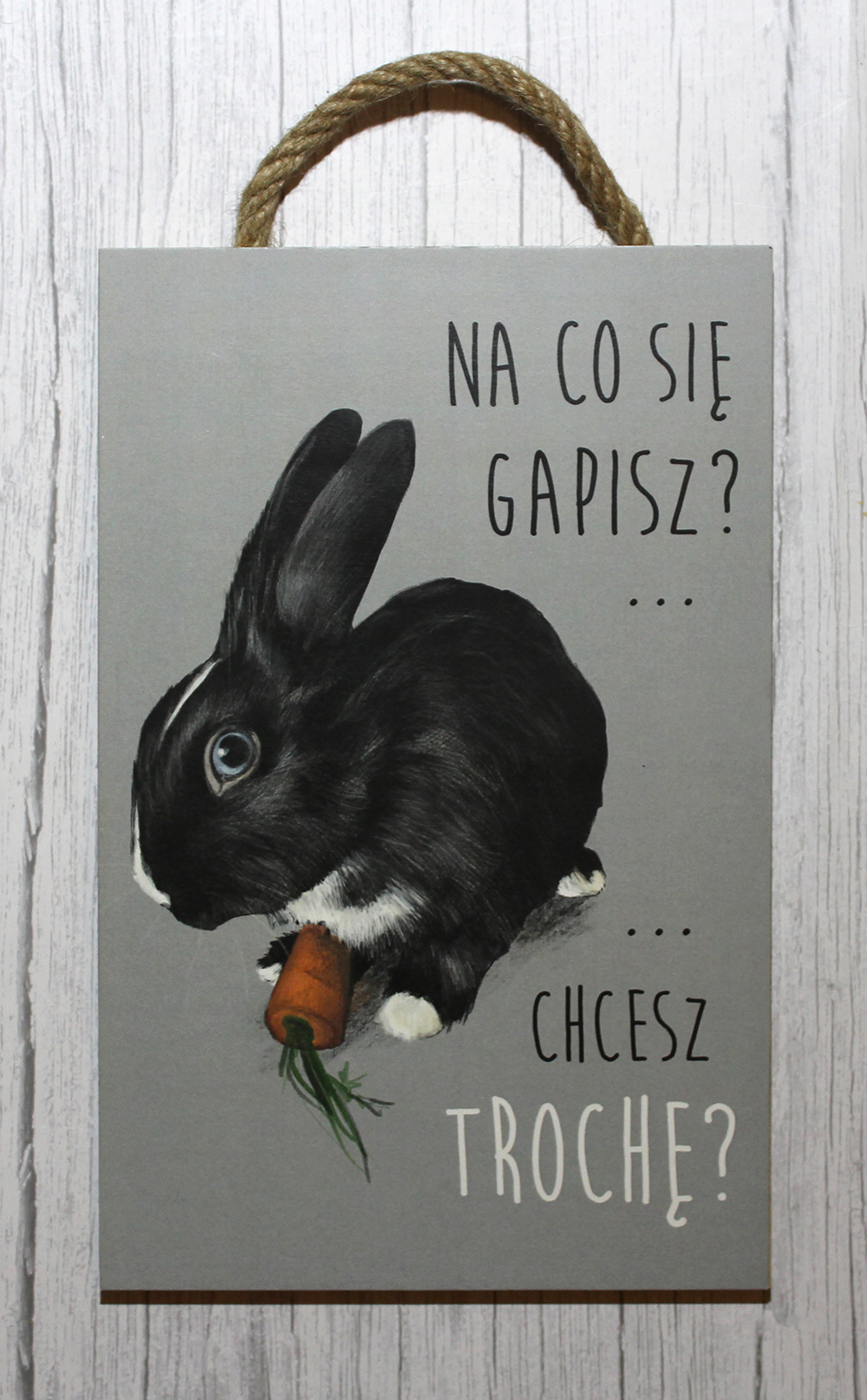 Tabliczka ze śmiesznym napisem, gadżet dla miłośników królików 🙂