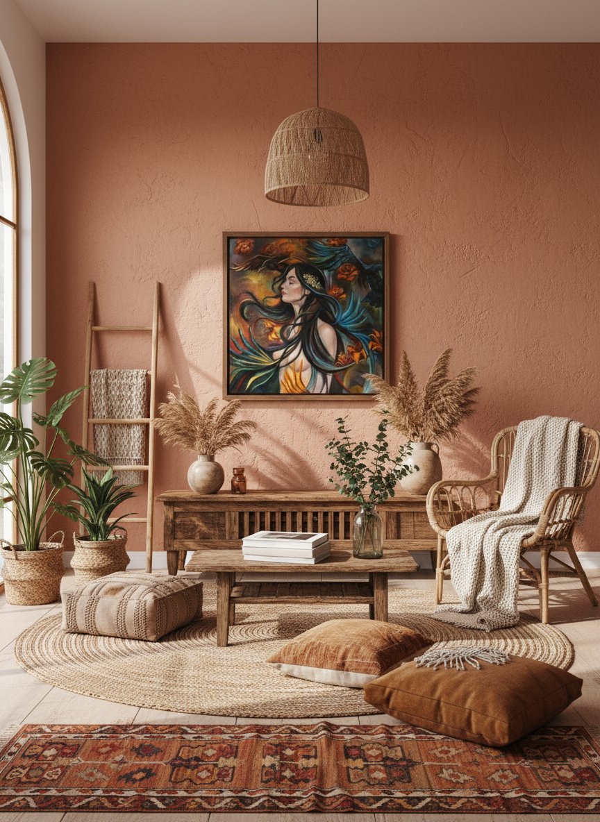 Dzięki intensywnym barwom i głębokim kontrastom dzieło przyciąga uwagę i staje się centralnym punktem każdego wnętrza. To nie tylko dekoracja, ale także obraz opowiadający historię – idealny dla osób ceniących sztukę z charakterem i znaczeniem.